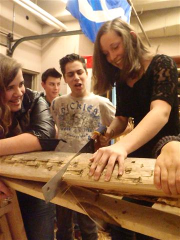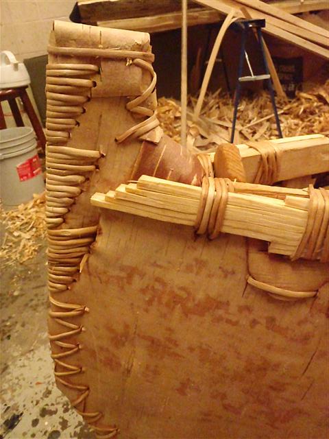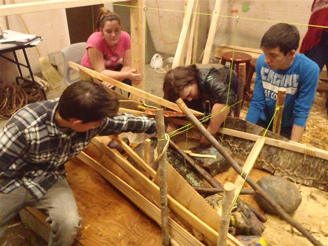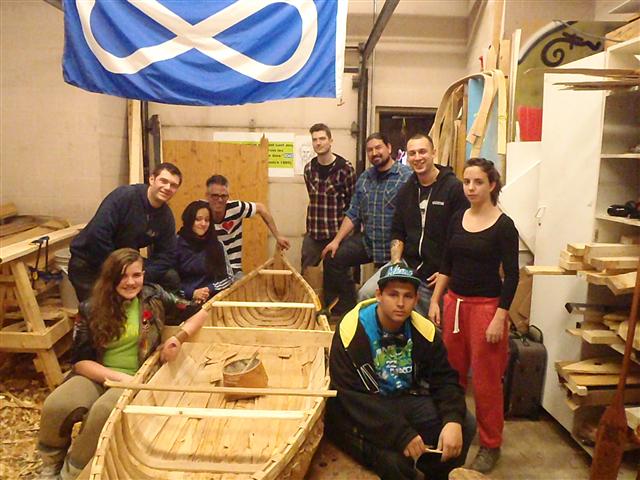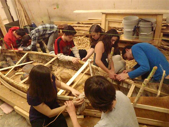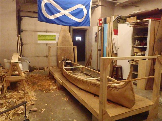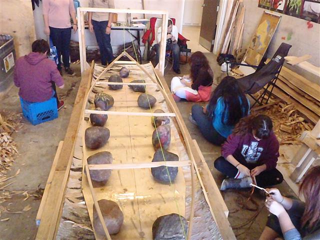 Salle pour fabriquer ensemble un véritable outil pédagogique tangible et culturel, un canot d'écorce de 14